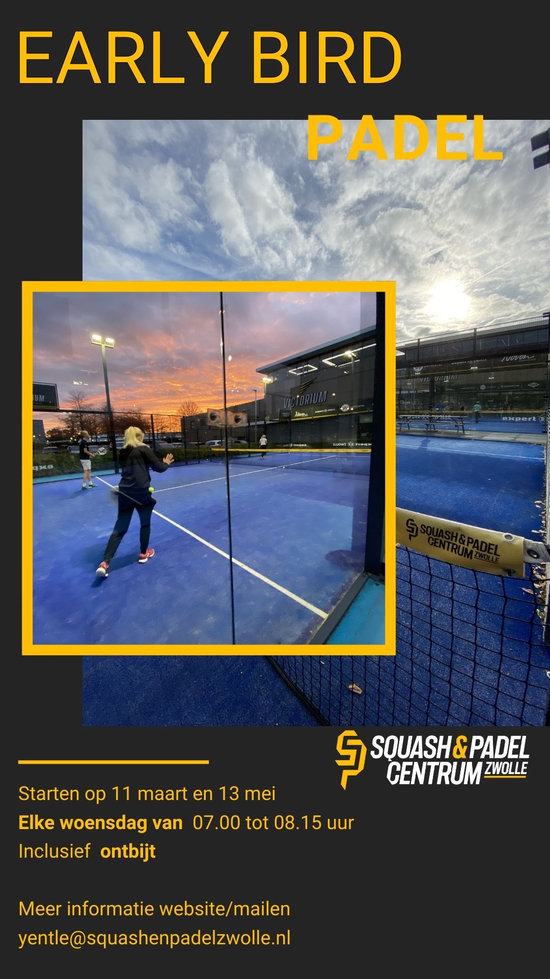 Mail naar yentle@squashenpadelzwolle.nl of meld je aan via onderstaande knop en dan zien we je graag bij de Early birds!