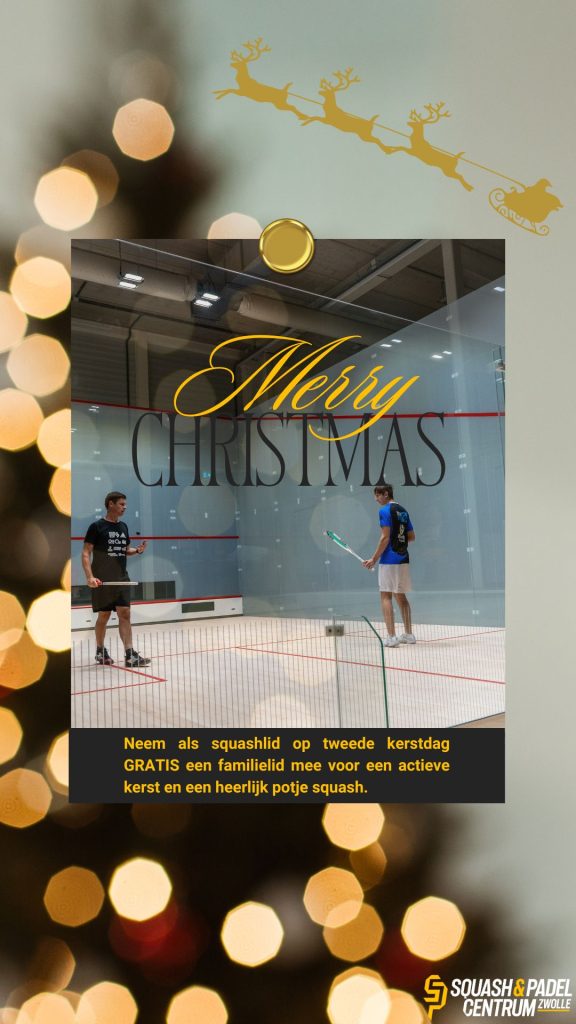 Op vrijdag 26 december (Tweede Kerstdag) nodigen we al onze squashleden uit voor een gezellige en sportieve ochtend. Er is niks fijners om na het kerstdiner van eerste kerstdag en het kerstontbijt van tweede kerstdag even samen in beweging te komen. Daarom geldt voor deze hele dag dat alle squashleden gratis een familielid mee mogen nemen voor een leuk potje squash samen. Zo ben je weer helemaal klaar om bij het volgende diner weer aan te schuiven.