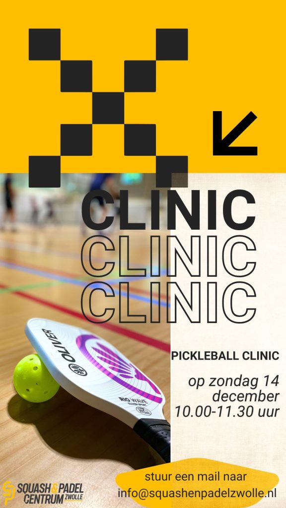 Naast de open speelmomenten hebben we dit jaar ook nog 1 Pickleball Clinic op de planning staan. Op zondag 14 december van 10.00-11.30 uur. De clinic zijn ideaal om kennis te maken met de sport en wat tips en tricks te krijgen en je spel naar een hoger niveau te tillen!